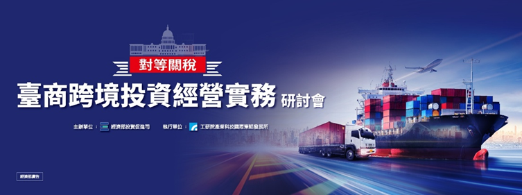 財團法人工業技術研究院舉辦「對等關稅:臺商跨境投資經營實務研討會」,歡迎會員廠商踴躍參加。